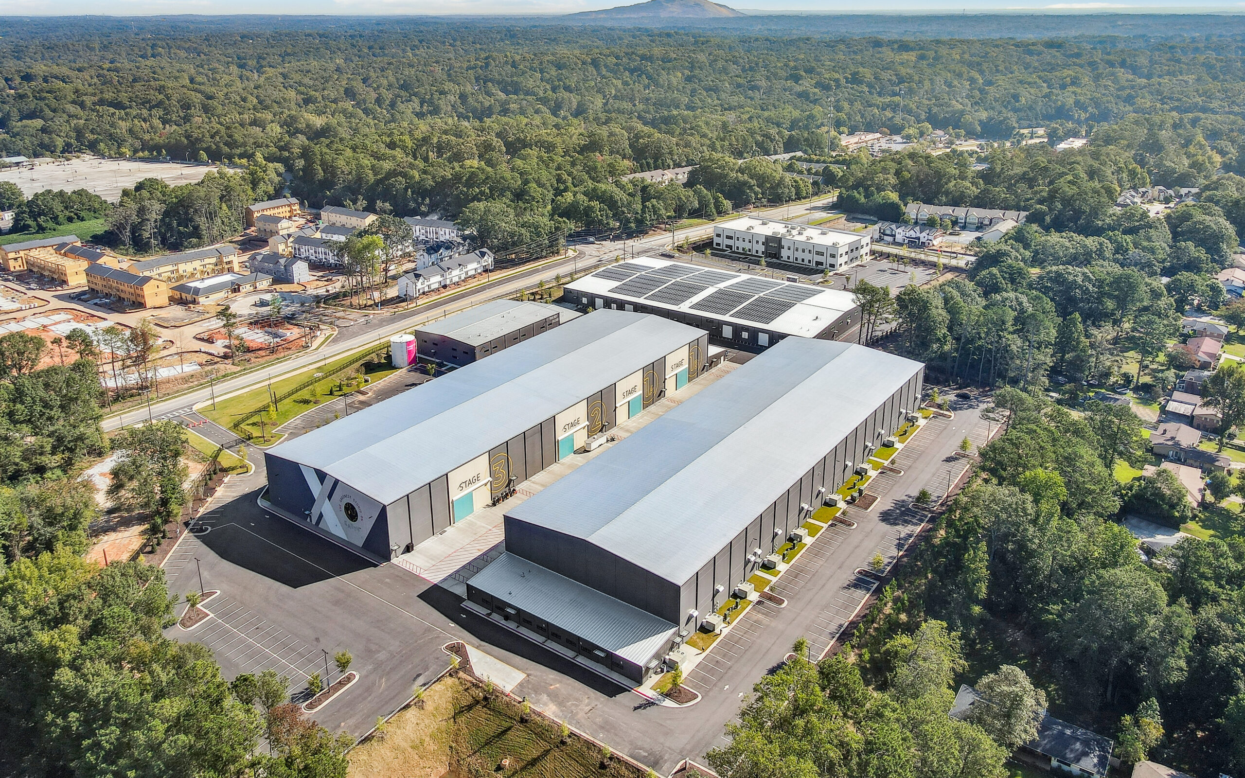 New 313,000 square foot movie studio campus located in Atlanta, Georgia includes 140,000 square feet of sound stage space across six sound stages and will be LEED certified.