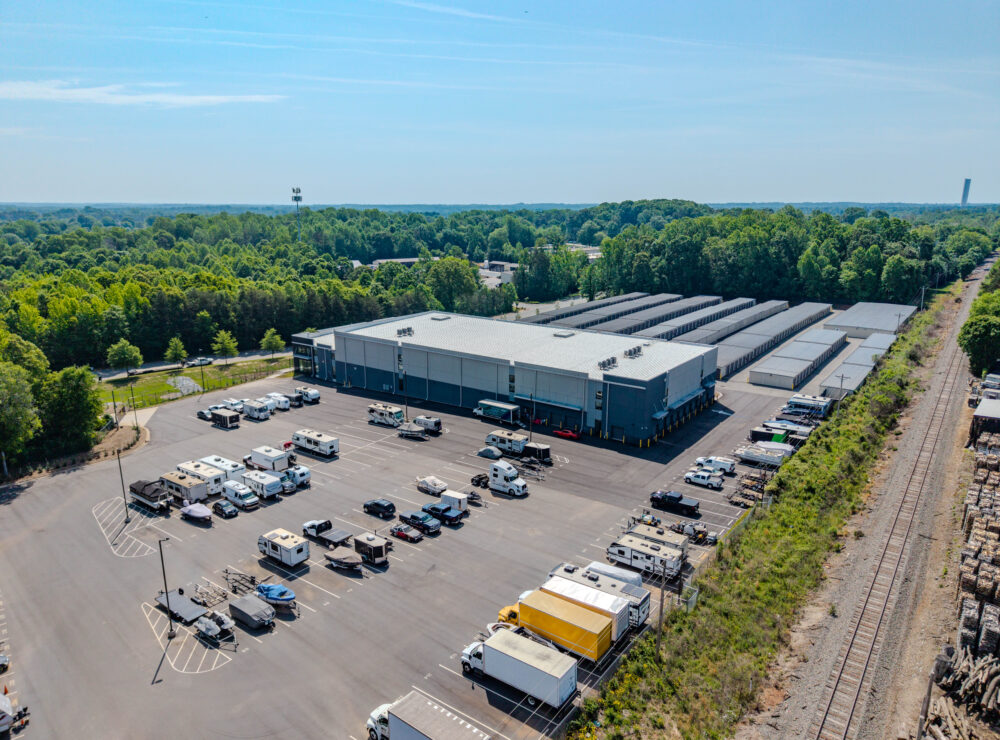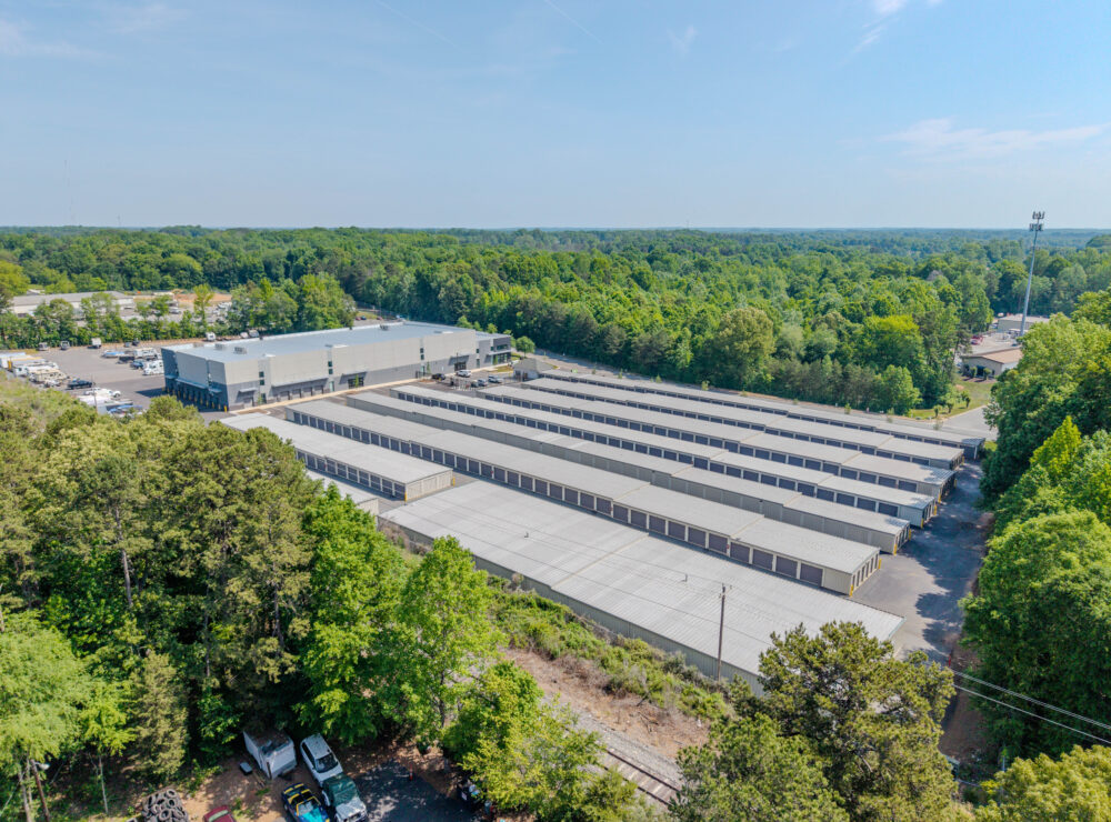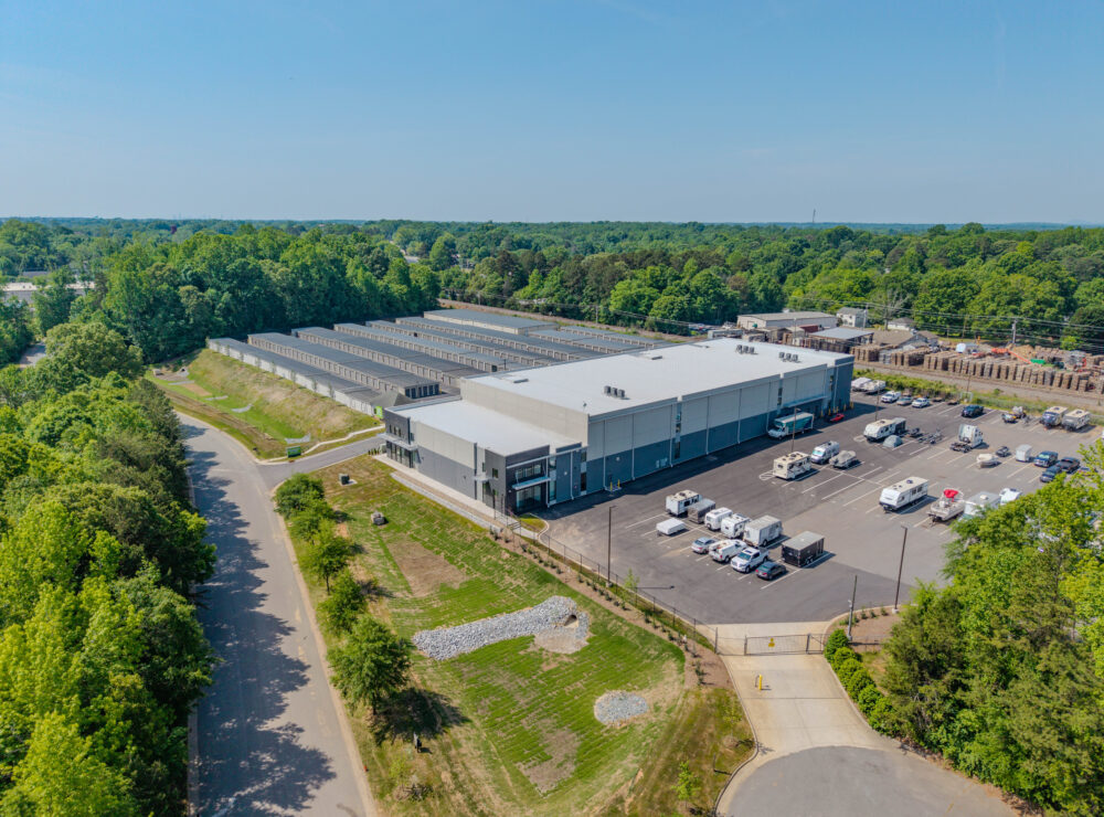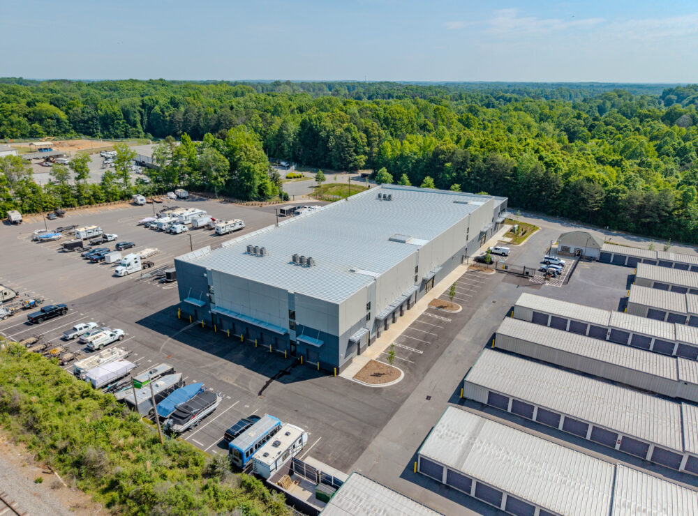 | Located just outside Charlotte in Huntersville, NC, this 94,633-square-foot Extra Space Storage facility includes a two-story office and three stories of climate-controlled storage, totaling 599 units.